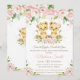 Lion Cubs Blush Pink Floral Twins Baby Shower Invitation