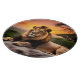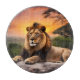 Beautiful Lion laying on a rock with jungle sunset behind