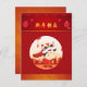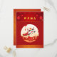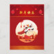 Cute illustration with a child dancing the Lion Dance for Chinese New Year + different decorative Chinese patterns as frames. Design on vertical greeting card with golden "Happy New Year" in Chinese. Matching greeting card.