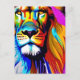 AI generated colourful yellow, orange, purple, blue and yellow lion artwork. geneartivecontent