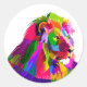 Lion head in geometric pattern classic round sticker