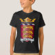 The t-shirt feels and looks great quality, a good thick cotton. It will be a little big for my son, but that means he will be able to wear it and not out grow it too soon. The print was as described on the order when personalised. True size, shape and colour T-shirt- thanks.