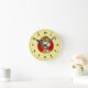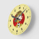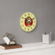 Clocks with illustration of head of cute smiling lion dress in red sports dress holding a football ball, in red circle, illustrated by Radka Kavalcova
