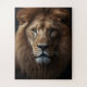 Close-up of a majestic lion with intricate mane details, dramatic lighting, realistic style