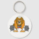 This design is a lion lifting weights. The lion has the weights in hand and is about to lift them. This lion lifting weights design looks great on this Keychain