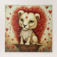 A adorable little lion and hearts.