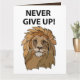 Lion Never Give Up Lion Card original design by Nisha Prabhu. Introducing the "Lion Never Give Up" Card, a fierce reminder of resilience and strength! This inspiring card showcases a majestic lion symbolising courage and determination, perfect for anyone embarking on a challenging journey or facing obstacles. Whether you're celebrating a friend's achievements, motivating a loved one, or simply spreading positivity, this card is sure to ignite the spirit of perseverance. Ideal for birthdays, graduations, or just because.