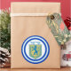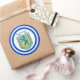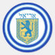 Round sticker with an image of a blue and yellow Lion of Judah emblem with Ariel in Hebrew at the top, and wide double blue borders trimmed in light blue on white. See matching confetti, label and wrapping paper. See the entire Hanukkah Sticker collection under the CARDS & STICKERS category in the HOLIDAYS section.