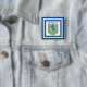 Square button with an image of a blue and yellow Lion of Judah emblem on white with light blue and dark blue borders and “Jerusalem” in Hebrew in blue letters above it. See matching square charm, large round premium metal keychain, square double-sided acrylic keychain, round necklace and wrist watch. See the entire Hanukkah Buttons & Pins collection under the ACCESSORIES category in the HOLIDAYS section.