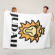 This fleece blanket has a design that features the word "Judah” in a bold unique print font with black letters displaying a cartoon style image of a lion's head with king's crown in the centre in this faith based quote theme. This Blanket is made from 100% buttery soft and cosy polyester fleece with edge-to-edge vibrant full colour sublimation printing and double edge stitching with a off-white coloured back machine washable.