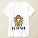 This women's v-neck t-shirt has a design that features the word "Judah” in a bold unique print font with black letters displaying a cartoon style image of a lion's head with king's crown in the centre in this faith based quote theme. This tee is contoured and side-seamed for a feminine made with lightweight fabric for comfort.