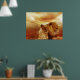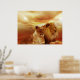 This print is of a lion couple sitting together .With the cloudy sky above them.