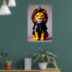 A cute and adorable yellow lion plush toy in black clothes. This is a AI generated art.