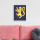 This design by Richard H. Fay features a heraldic lion rampant, a lion depicted in profile rearing up on its hind legs, ready to stave off all attackers.