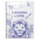 School related doodles and wide ruled notebook paper fill the background behind this thoughtful lion mascot. Personalise your son or daughter's back to school notebook by customising with their name, school name, or other custom text of your preference. Go Lions!