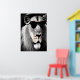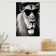 Black and white art of a lion head with sunglasses. This is a AI generated art.
