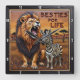 Lion Zebra Savanna Habitat Square Wall Clock