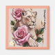 A realistic tattoo of a lioness holding a rose with a long stem, blending strength and beauty. Subtle gold accents highlight the rose, set against a soft textured background for a refined, powerful look. "Original Image was generated by Meta AI. AI generated artwork. Licensed under CC BY-SA 4.0.