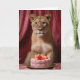 Let's dive right into the wild with a birthday card that's as unique as a zebra's stripes. Picture this: a regal lioness, as elegant as a sunset over the savannah, set against a backdrop of lush, red curtains that would make a Broadway stage blush. And what's that she's got? A birthday cake, as red as a ripe strawberry and as tempting as a fresh spring, of course! Because even in the wild, we know how to throw a party that's fit for a queen. Inside, there's nothing but the open plains - a blank canvas for your own birthday roar. So why not add a little roar to your birthday celebrations with this majestic birthday card?