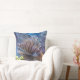 The lovely lionfish on this 20” Throw Pillow is swimming in a colourful saltwater aquarium. It is an original photograph by ZoeSPEAK, showing the pattern of thick and thin stripes and fancy fins on this unusual looking fish. It is a colourful photo with the tropical blue, yellow and pink of the aquarium and the salmon pink nose of the fish.