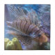 The lovely lionfish on this small Ceramic Tile is swimming in a colourful saltwater aquarium. It is an original photograph by ZoeSPEAK, showing the pattern of thick and thin stripes and fancy fins on this unusual looking fish. It’s a colourful photo with the tropical blue, yellow and pink of the aquarium and the salmon pink nose of the fish.