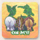 Animal Parade Lion, Tiger, and Bear, Oh My! Beverage Coasters features our cute animals from the back standing in a green jungle with the words, Oh My, beneath, and our signature textured yellow, orange background. Join the Animal Parade and get matching coasters with the animals from the front.