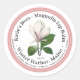 Lip Balm Label with Vintage Magnolia illustration and rose-coloured border. Write in your business name, location and ingredients. Fits on 0.5 oz round metal tins.
