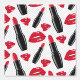 This design features lips and lipstick on a grey polka dotted pattern.