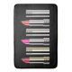 A fun pattern of colourful lipsticks in chrome tubes. Very girly and modern. Looks like a lipstick city skyline.