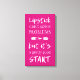 This design features the cute makeup related phrase "Lipstick Can't Solve Problems But It's A Pretty Good Start".