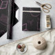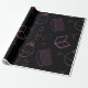 Lipstick, comb and powder box, blush, perfume and bows. Pink on black. Seamless pattern