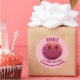 This classic round sticker features lipstick pink face smile is a little curve that straightens out everything custom-designed by deluxephotos.