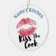 Lipstick Print Kiss the Cook ROUND Ceramic Tree Decoration