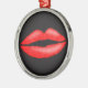 Lipstick red luscious and seductive female lips with textured effect metal Christmas ornament