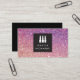 A trio of lipstick silhouettes gives a clean and elegant visual identity to this modern business card design for freelance makeup artists. Set on a faux bronze-pink-purple ombre glitter background for a stylish effect. Please contact the designer if you need help with longer names or different type layouts. © 1201AM CREATIVE