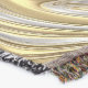 A quality printed throw has its advantages. This is a much finer weave throw than its loopier cousins, and though lighter, it is worth the investment for custom room accessorizing. The back is much prettier than the typical brown, and the fringe on the long sides very vivid, the selvage nicely done. Before photographing, I washed the throw in cold water, delicate, with a thicker woven throw the same size. On tumble dry low, this throw was dry in half the time as the other. This is a very practical quality if you use throws for furniture covers or to wrap up in frequently. The sleekness of the fabric makes it a great layer for accenting or protecting without the feeling of sitting on too much stuff. Perfect for napping or when you feel a light chill coming on. The color printing is beautiful and on this fabric, matched the design and color of my Photoshop image. This is an advantage for blending room fabrics and colors. The fringe on the short sides prints the colors from the design image and therefore varies from the side fringe. I streaked a white fractal line through the plaid pattern to give the illusion of weaving. This printed as crisp as an illusory thread, and put some white in the short side fringe, showing another advantage of print vs loomed- for artistic purposes, line lines, detail, and color integrity can be planned and preserved. My loomed throws have color limitations and more of a needlepoint texture. Print throws reproduce an exact image. The throw felt a little stiff straight out of the package, but this went away in the first delicate wash. Of course I searched the wash water for ink or bleeding and there was none.
