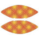 A repeating pattern with a yellow sun as the centre, surrounded by orange flames.