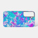 Beautiful liquid marble cell phone case in blue, pink, and white.
