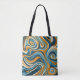 Liquid Swirl Ochre Blue Trippy Pattern Tote Bag