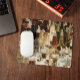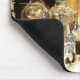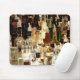 This mousepad is features liquor bottles displayed on shelves in a bar.