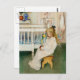 Little girl in the nursery poses in her nightgown. Portrait depicts her holding a yellow tulip