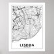 Poster Map of Lisbon City in Portugal, classic style in black and white, with streets and roads. Sleek design with no frame, perfect for decorating any space.