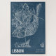 Lisbon Portugal City Map Line Art Blue Print