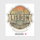 A beautifully detailed vintage-style illustration featuring the iconic skyline of Lisbon, Portugal, including historic architecture, a classic tram, and the famous bridge over the Tagus River. Designed with warm retro sunset tones and a nostalgic travel-poster aesthetic, this artwork captures the charm, culture, and timeless beauty of Lisbon. A perfect cityscape design inspired by European travel, architecture, and vintage illustration art.