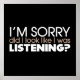 "I'm sorry did I look like I was listening?" - This sassy and attitude-filled t-shirt design is perfect for all those wanting to let people know what they really think.