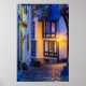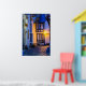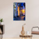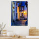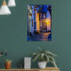 Lit Street Lamp on Cobbled Street Poster