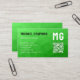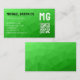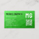 Lite green geometric mesh pattern QR code Monogram Business Card