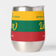 Celebrate Lithuanian Independence Day with this striking February 11th stainless steel stemless wine tumbler, which features the yellow, green, and red bars of the Lithuanian national flag. Customise as desired. Į sveikatą! Reverse shows identical design.