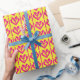 Lithuanian pink and yellow folk art hearts pattern wrapping paper