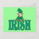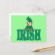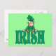 This cute St. Patrick's Day design features a wee leprechaun wearin' green and sitting on top of the caption "Irish" in large green text.